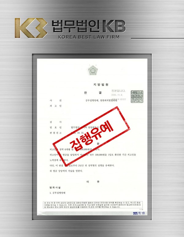 그 결과 본 공무집행방해 사건은 집행유예 판결로 마무리되었습니다.